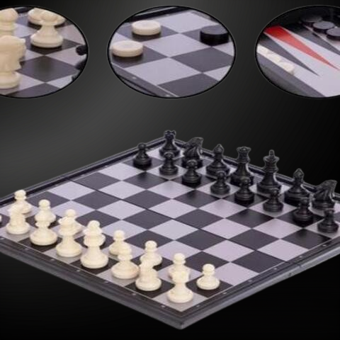 Шаховий набір 3 в 1 об'єднує шахи, шашки та нарди в одному компактному комплекті. Магнітна дошка (25х25 см) забезпечує комфортну гру вдома чи в дорозі.
